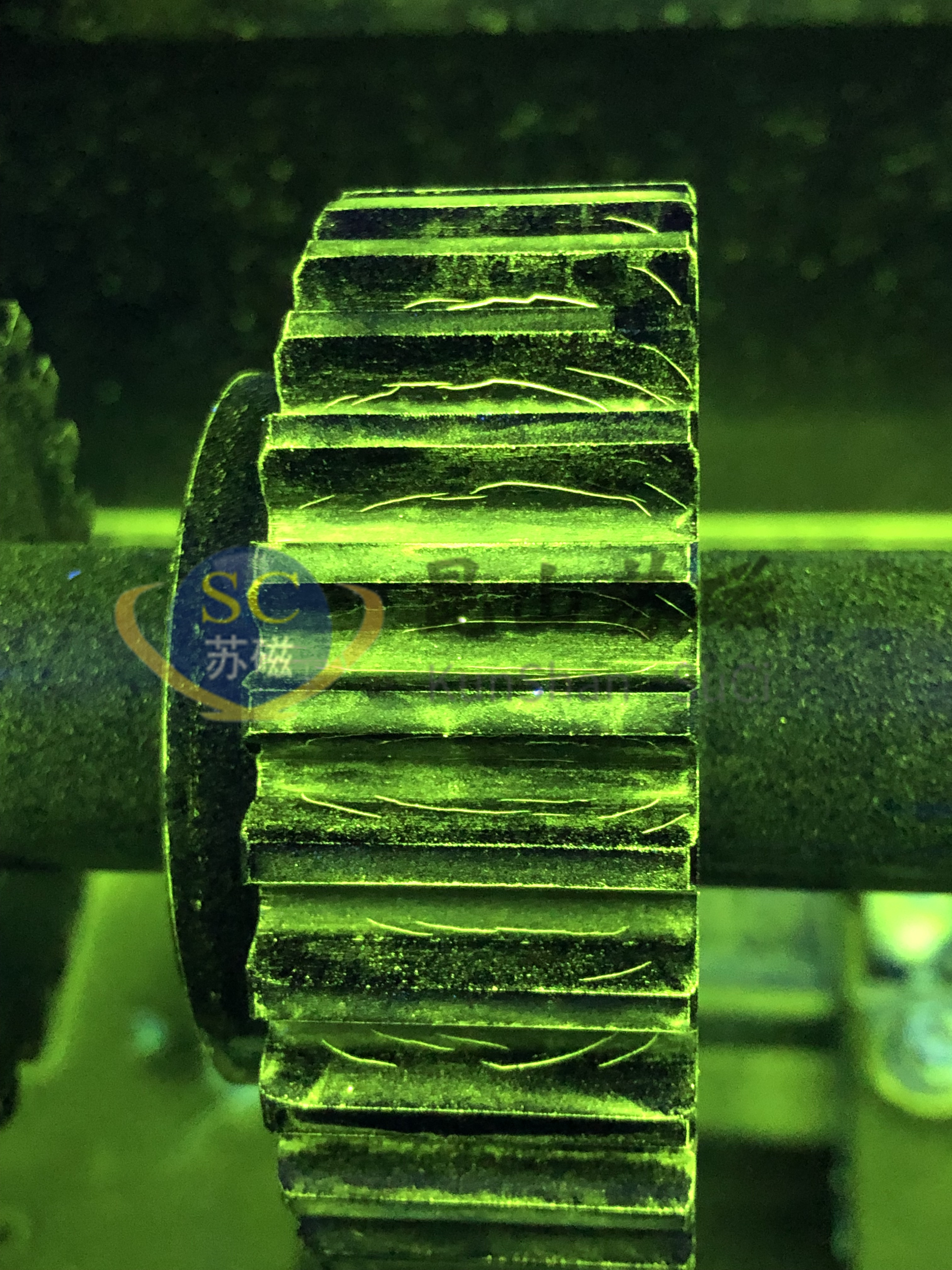 2.12、探傷節拍:約12秒/件(觀察及評判時間除外,探傷時間和工藝過程可根據需方實際需要進行調整,齒圈亦可多件同時磁化,提高探傷檢測效率);